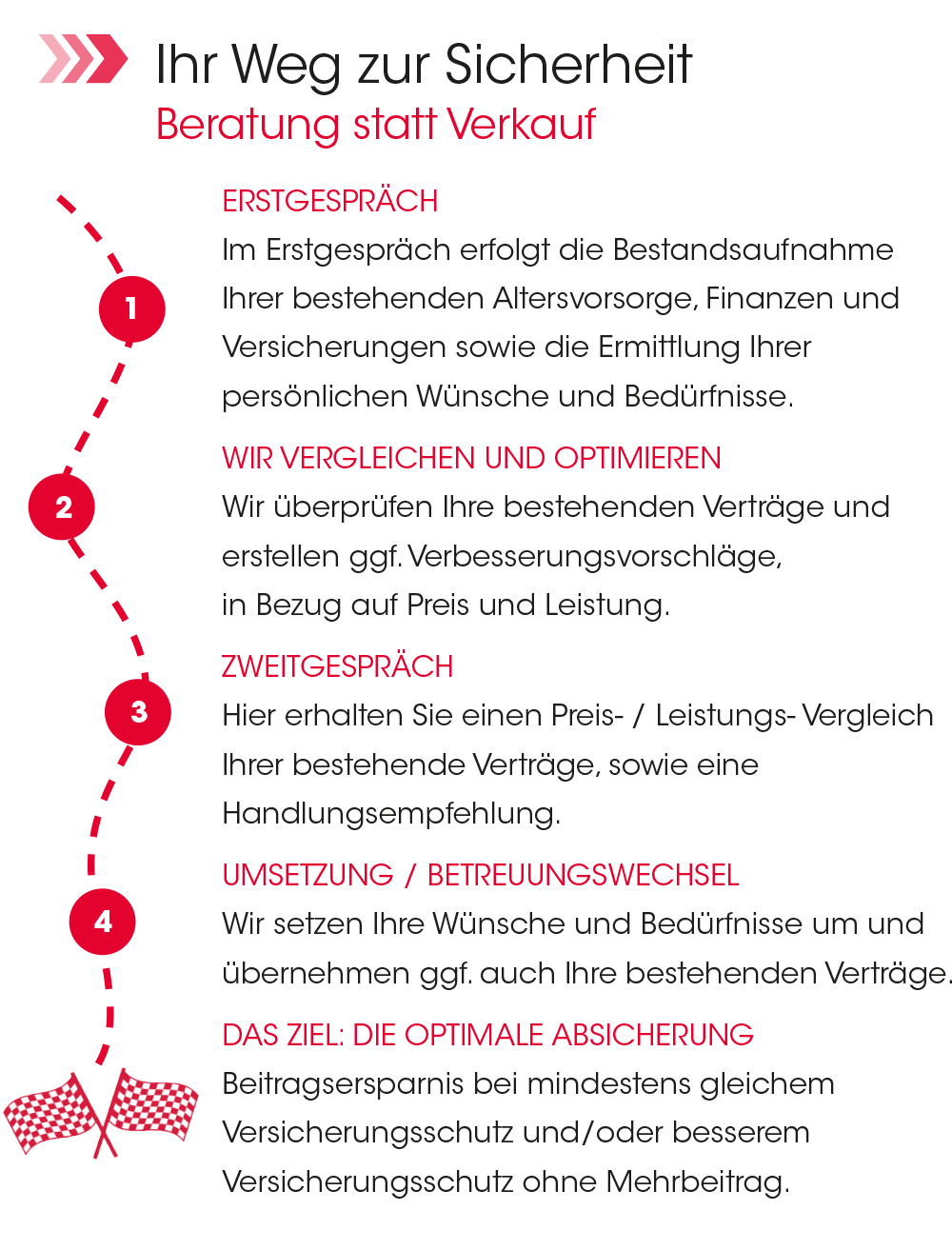 Durch einen Versicherungsvergleich überprüfen wir Ihre bestehenden, sowie Angebote anderer Versicherungsanbieter. Unser Anspruch ist es bei gleichem Beitrag deutlich mehr Leistung oder gleiche Leistung preiswerter anzubieten.